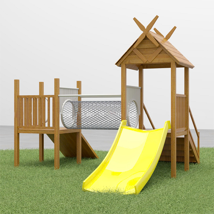 Không gian sử dụng cầu trượt liên hoàn gỗ ngoài trời cho bé: