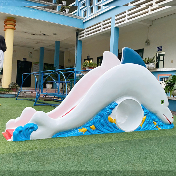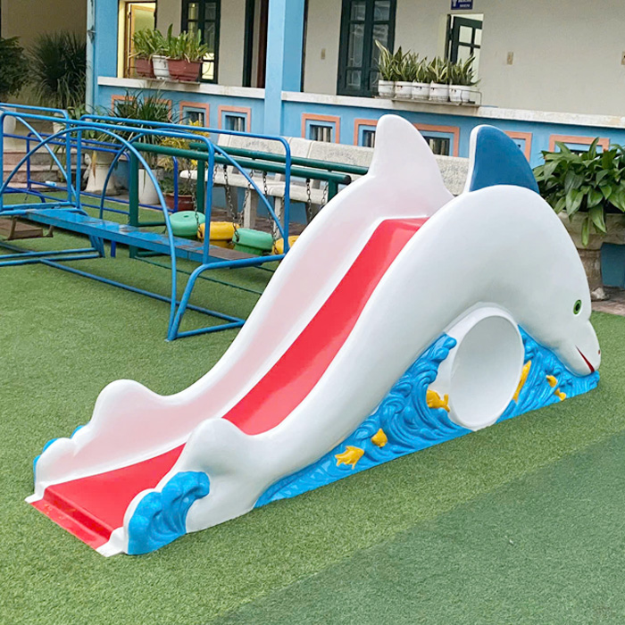 - Cầu trượt ngoài trời Cá Heo nhựa composite, được thiết kế với kích thước phù hợp với các bé trong độ tuổi mầm non, giúp bé vui chơi an toàn, phát triển vận động hiệu quả và tư duy khi chơi.