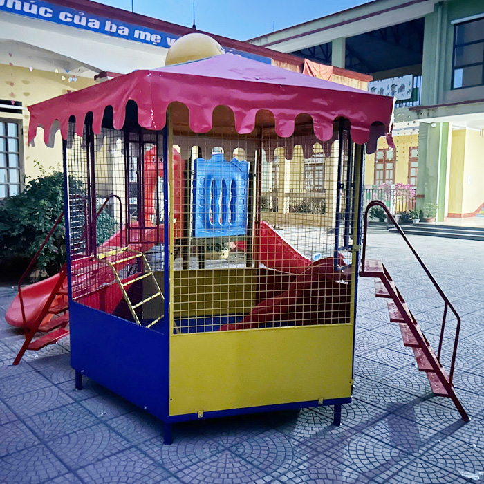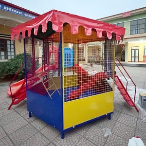 - Sản phẩm được làm từ chất liệu khung thép chắc chắn, sơn tĩnh điện 3 lớp chống gỉ, kết cấu vững trãi tạo thành 1 nhà chơi thú vị.