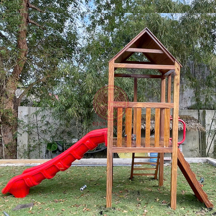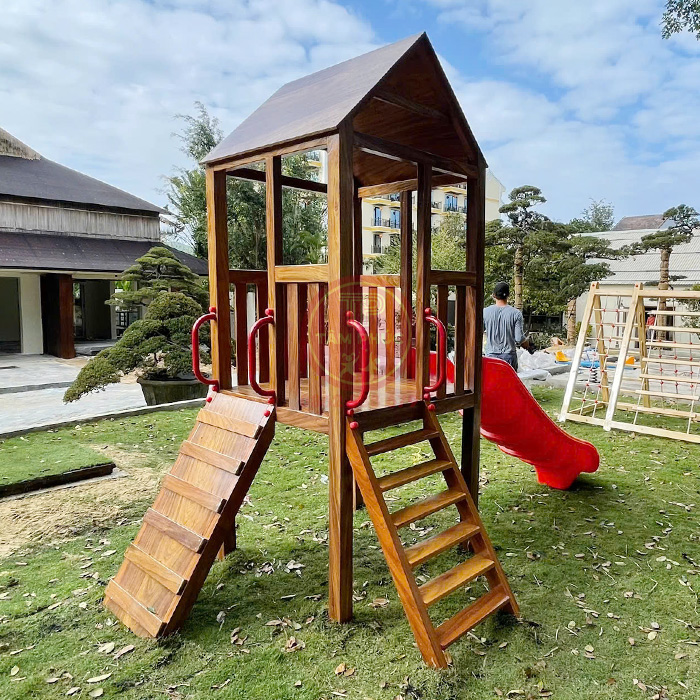 Không gian sử dụng nhà chòi cầu trượt gỗ ngoài trời cho bé: