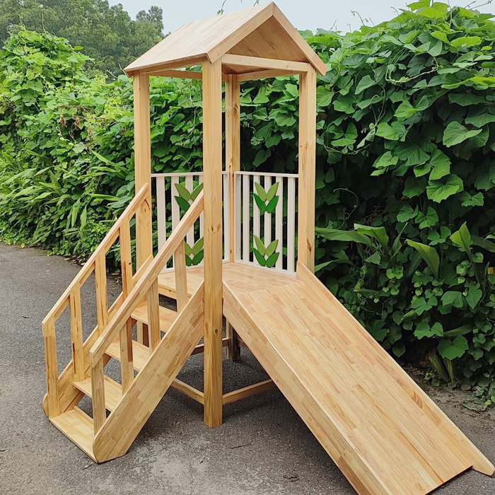 - Mẫu cầu trượt gỗ trong nhà cho trẻ em được thiết kế cho phép từ 1 – 3 bé cùng chơi 1 lúc.