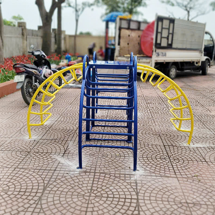 - Thang leo trèo 4 cạnh cong cho bé mầm non phù hợp lắp đặt và sử dụng tại không gian ngoài trời. Giúp bé vui chơi, vận động thể chất tối đa nhất.