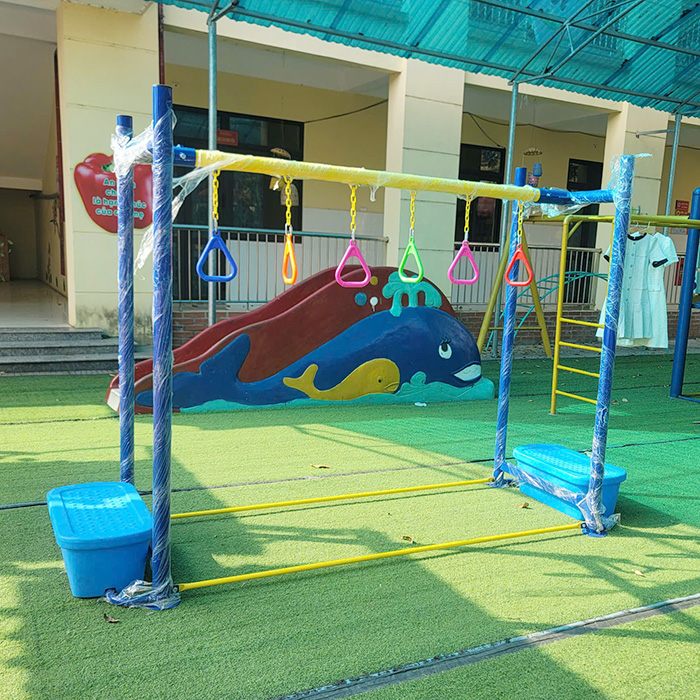 - Xà đu tay vận động thể chất cho bé mầm non phù hợp lắp đặt và sử dụng tại không gian ngoài trời. Giúp bé vui chơi, vận động thể chất tối đa nhất.